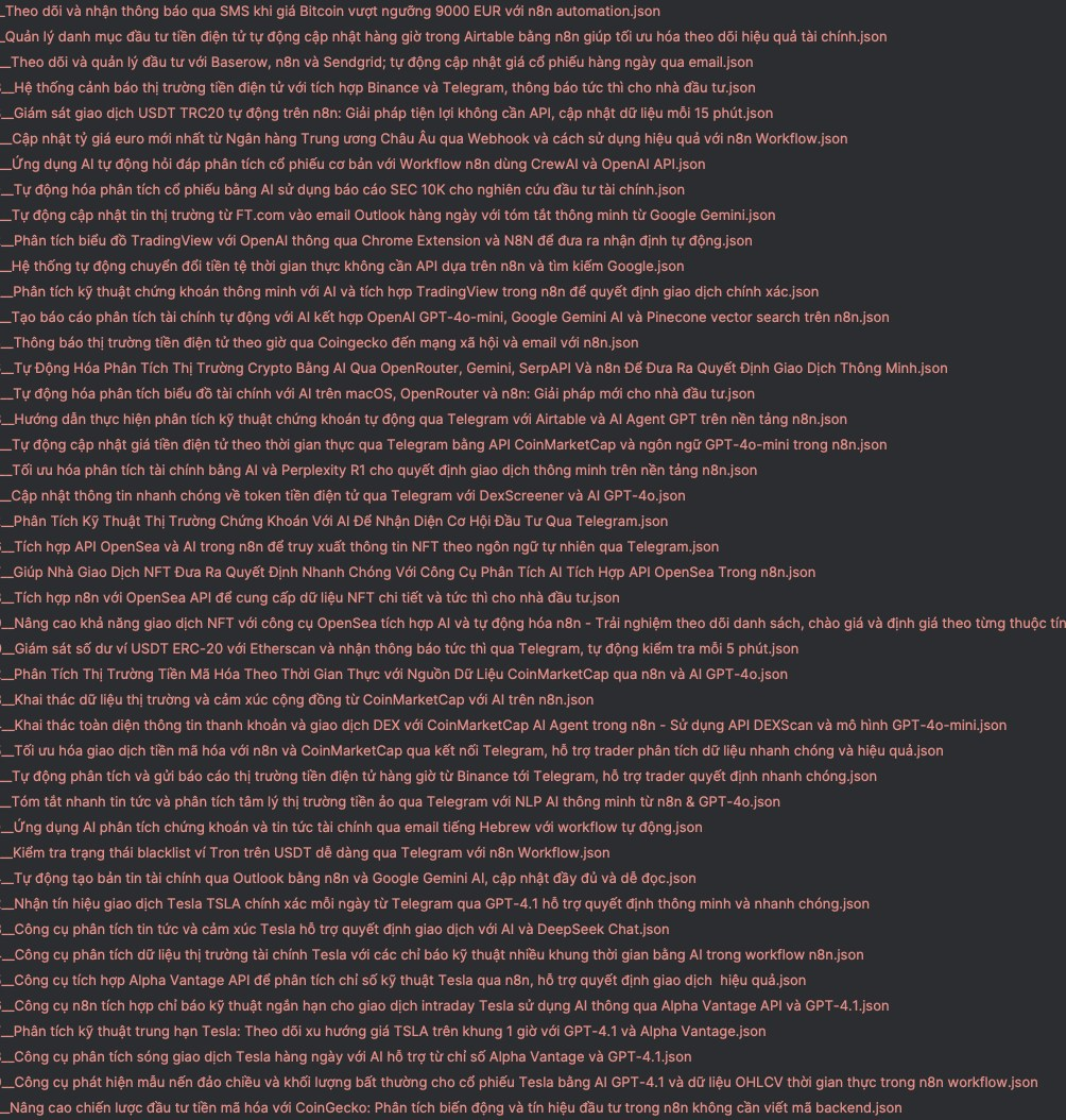 Mình mới tổng hợp được hơn 130 workflow - quy trình tự động hóa dành riêng cho anh em trading cổ phiếu, crypto các thứ... Lưu ý nếu là cổ phiếu thì nó là cổ phiếu của Mỹ, nói chung là mấy sàn to quốc tế chứ không phải của VN. Còn crypto thì sẽ có của Binance, CoinGecko...