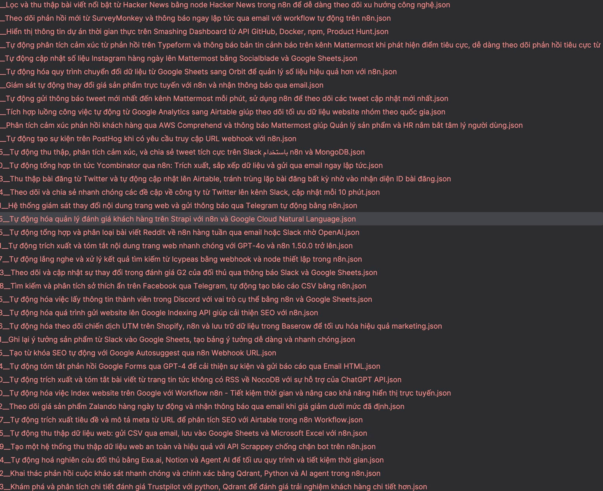 Bách mới tổng hợp được hơn 500 workflow - quy trình tự động hóa dành riêng cho anh chị em muốn xử lý các công việc thu thập dữ liệu, theo dõi đối thủ, phân tích thị trường, tìm kiếm cơ hội....