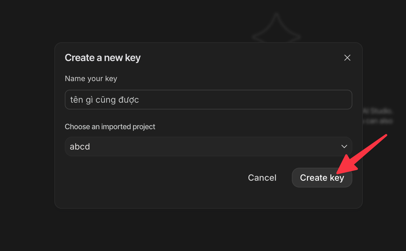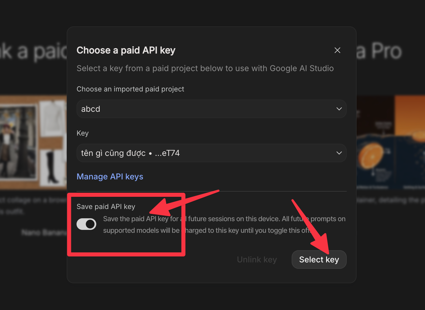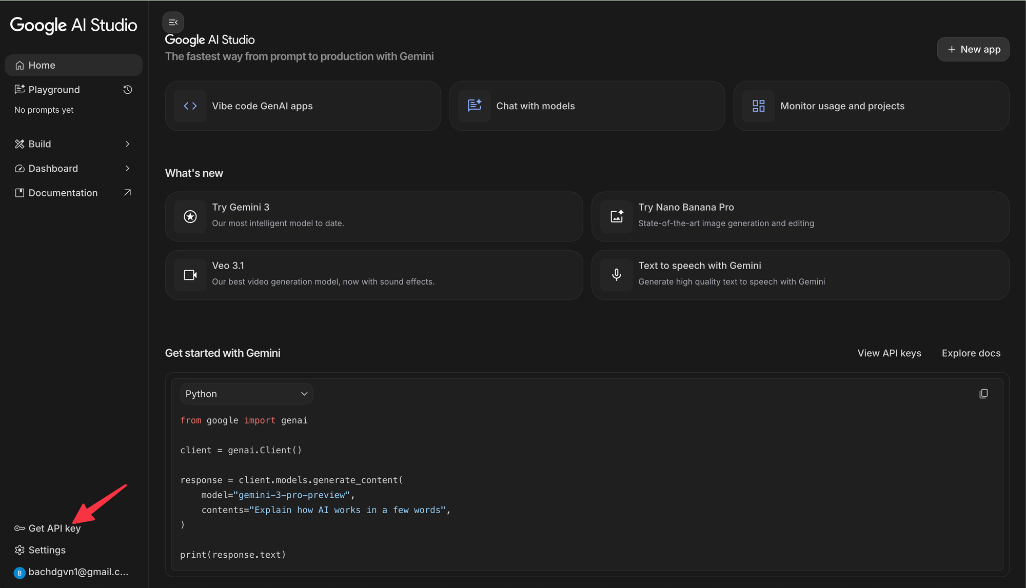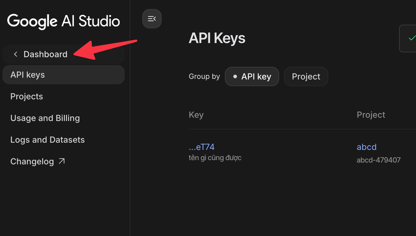 Bước 20: Bây giờ, hãy liên kết API Key này với Google AI Studio.
