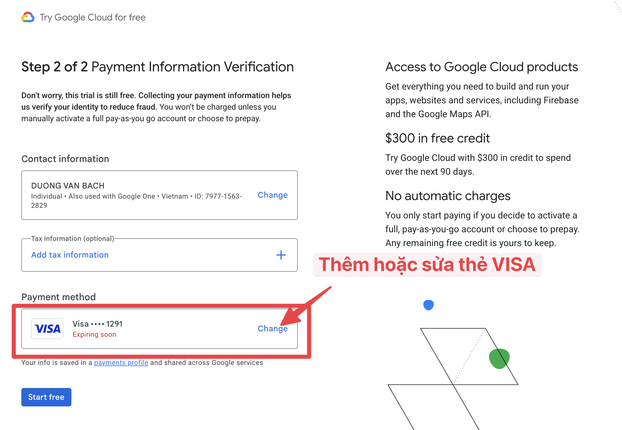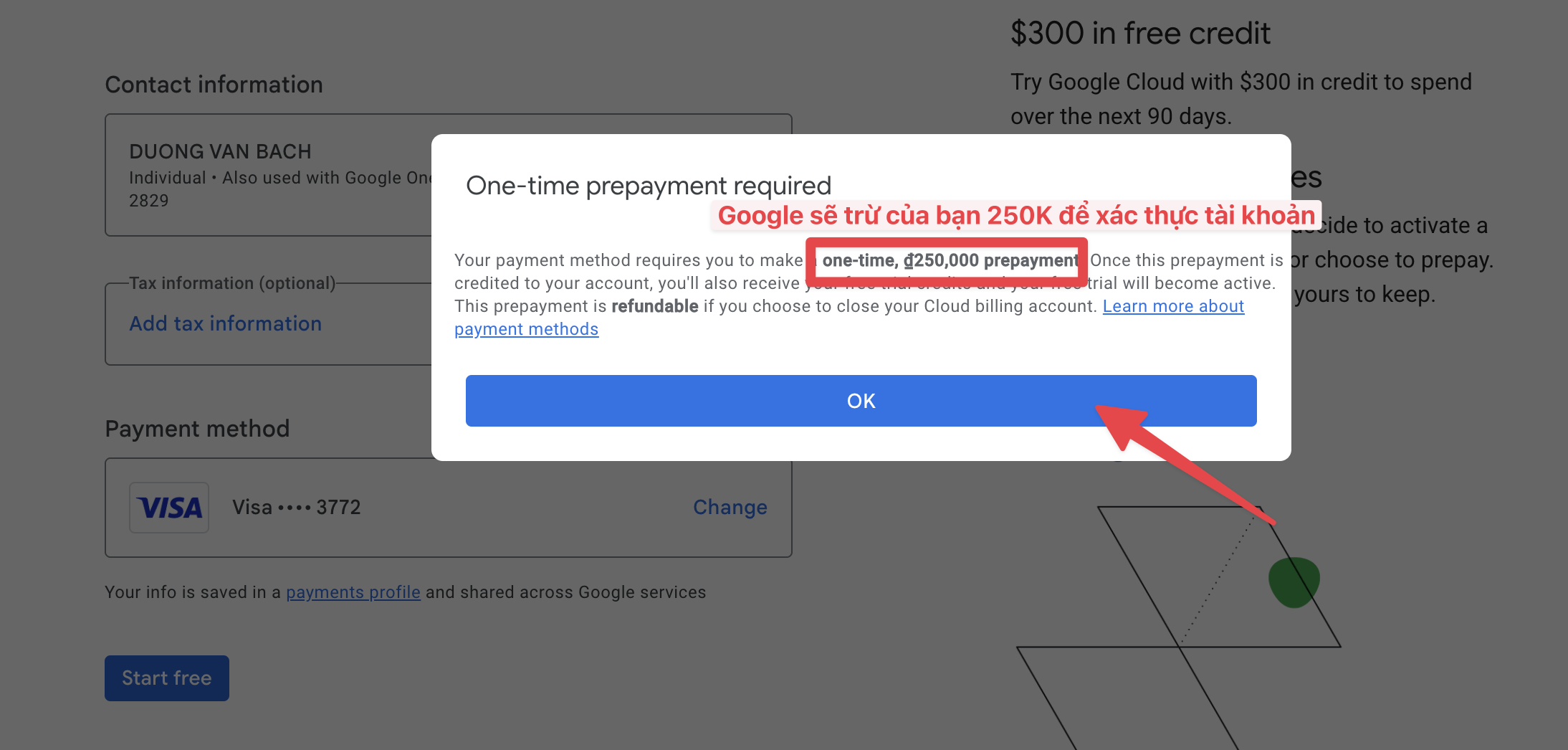 $300 credit trên Google Cloud là khoản tín dụng miễn phí mà Google tặng cho người dùng mới để thử nghiệm các dịch vụ trên nền tảng Google Cloud Platform (GCP) trong vòng 90 ngày. Khoản tín dụng này có thể được sử dụng để chi trả cho các dịch vụ như máy chủ ảo (VPS), lưu trữ, phân tích dữ liệu và nhiều dịch vụ khác trong đó có bao gồm AI.