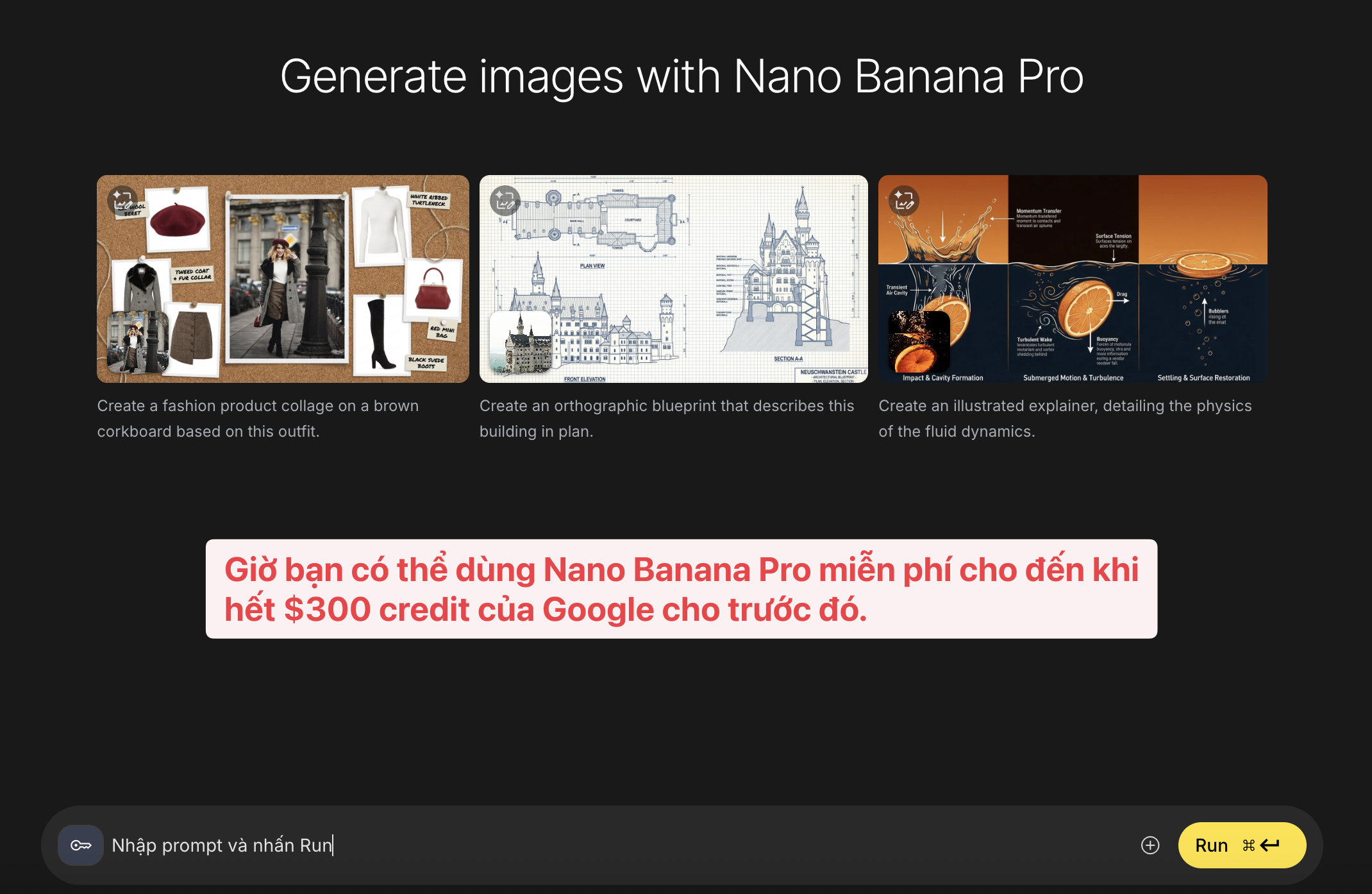 Dùng Nano Banana Pro → tạo hình thumbnail, ảnh sản phẩm, poster quảng cáo... tham khảo ở đây: