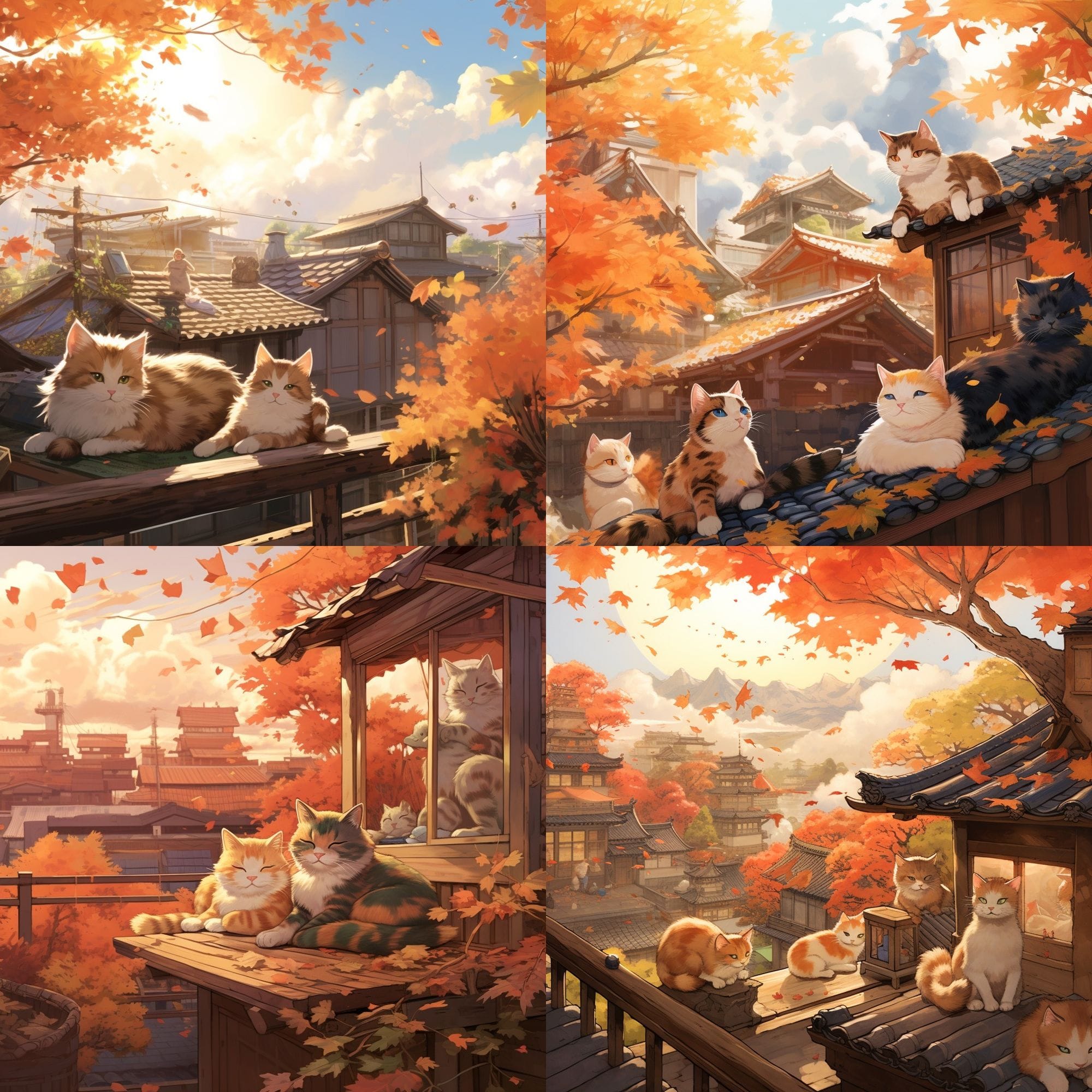 Một ví dụ khác về khi tôi muốn vẽ tranh con mèo ngủ trên mái nhà theo phong cách Anime.