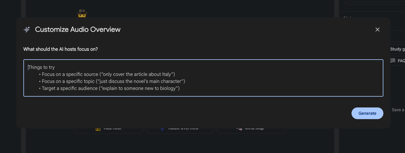 NotebookLM không có cách nào để bạn chỉnh sửa cách bắt đầu sau khi file âm thanh podcast được xuất bản. Nhưng bạn có thể dùng ngôn từ để khiến AI mở đầu podcast theo ý mình ngay từ lúc khởi tạo.
